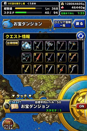 トレジャーズイベント、お宝ダンジョンではものすごい種類の装備品を手に入れることができます。 過去のイベントに登場した装備の復刻や、マスターズGPで手に入ったSS装備も複数本手に入るようになっています。 ちょうど新春うんだめしで賀正装備が手に入る…